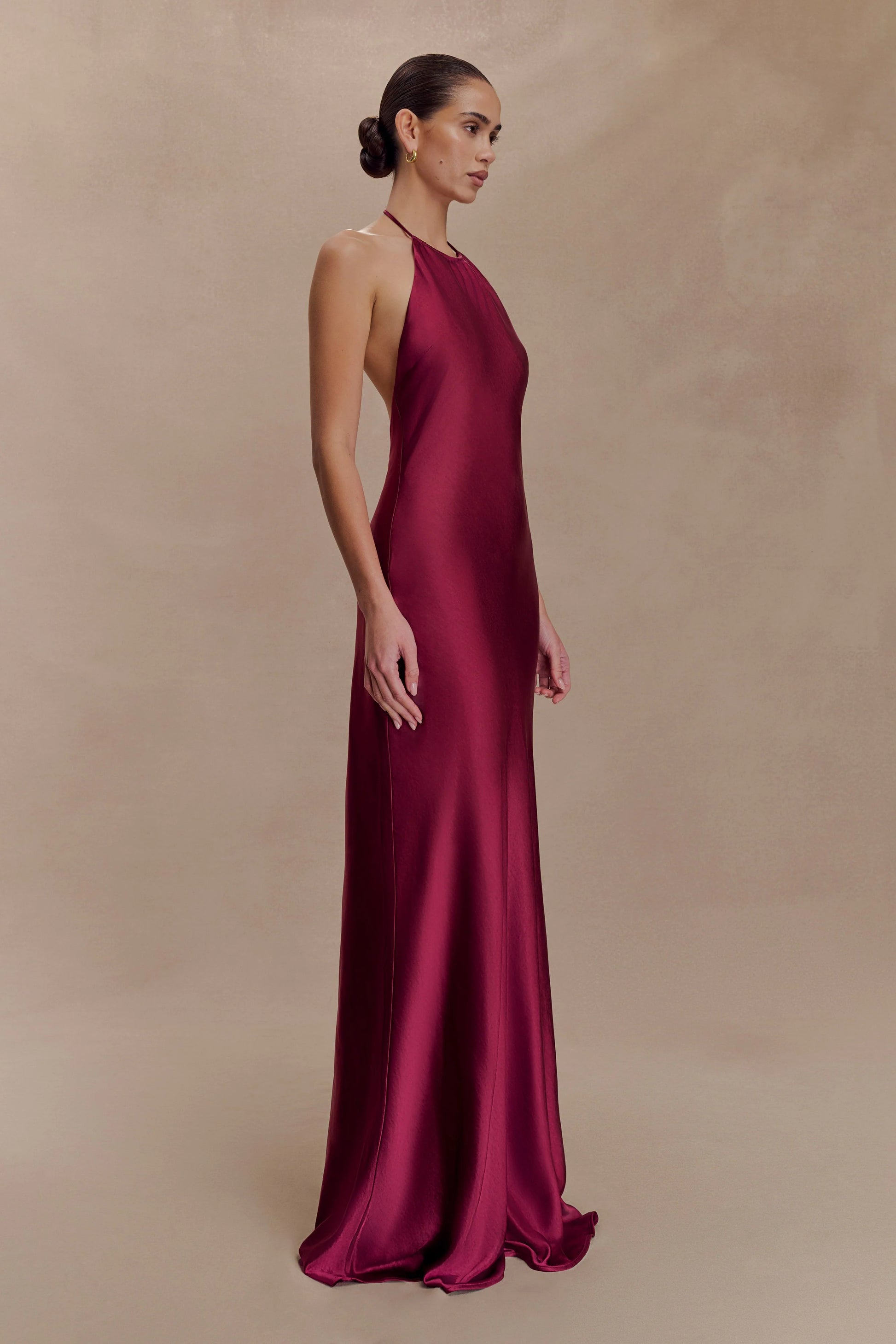 - Satin Halter | Adjustable halter neckline | Open back | Back invisible zip
